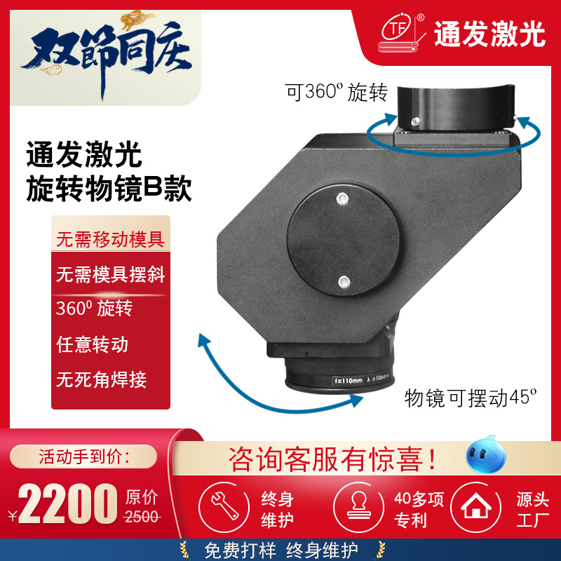 旋轉(zhuǎn)物鏡B款旋轉(zhuǎn)物鏡A款,無需移動(dòng)模具擺斜,360度旋轉(zhuǎn),任意轉(zhuǎn)動(dòng),無死角焊接。
