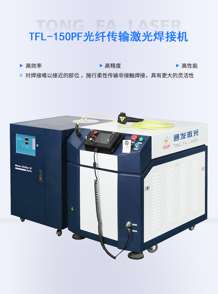 通發(fā)激光TFL-150PF光纖激光焊接機,采用能量反饋控制模式,能量較穩(wěn)定,光纖傳輸光束質(zhì)量好,適合0.5mm以下金屬不銹鋼板材的精密激光焊接,是批量五金產(chǎn)品中小功率焊接專用機型。