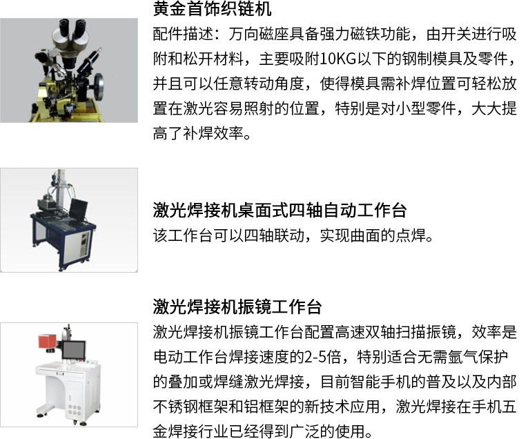 通發(fā)激光研發(fā)針對配合黃金織鏈機、K金制鏈機、首飾織鏈機、項鏈織鏈機的TFL-40PF自動光纖激光焊接機,焊接機采用能量反饋技術(shù),光點穩(wěn)定,能量強勁,便與安裝,實現(xiàn)一環(huán)一焊的功能,確保金鏈的耐拉強度,可以廣泛應用在點焊及柔性加工需求行業(yè)等焊接。本激光焊機實現(xiàn)了風冷一體的小型化結(jié)構(gòu)。適用于各種生產(chǎn)場所。