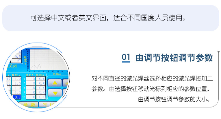 ![]() 模具激光焊機焊絲筆 配件描述:本激光焊絲筆帶有鎖頭,可以鎖住0.3-0.6的焊絲,特別針對深孔深槽等不易手持焊絲補焊的情況下,焊絲筆起到了穩(wěn)定焊絲的作用,是模具激光修補不可缺少的工具。 |