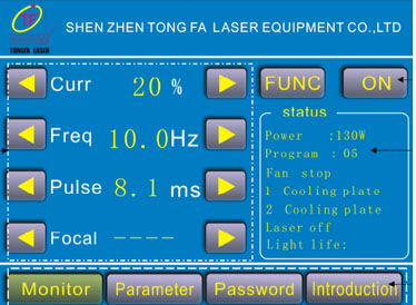 3、 本模具激光焊機,提供了液晶護眼光閘的時間設(shè)置,針對不同的脈寬,可設(shè)置不同的擋光時間,保護操作工眼睛不受到激光的閃眼不舒服感。