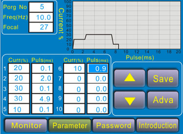 2、 本模具激光焊機系統(tǒng),提供了多達50組波形參數(shù)儲存。由于模具激光燒焊時,隨時會焊接不同材料,系統(tǒng)參數(shù)可隨時調(diào)取使用,無需重新編輯波形,方便快捷。
