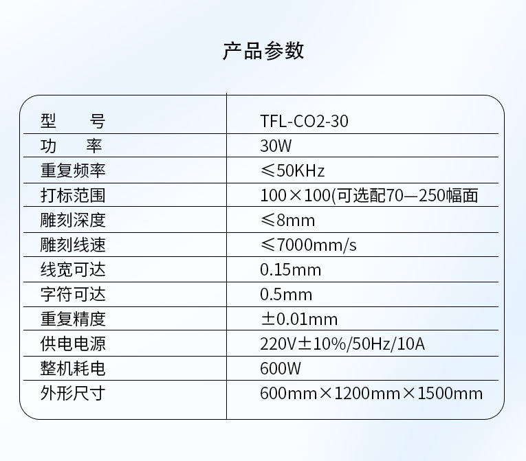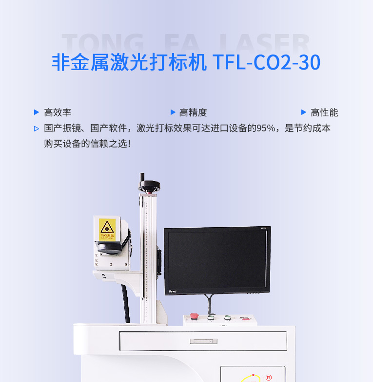 通發(fā)激光研發(fā)TFL-CO2-30非金屬激光打標(biāo)機,是皮革激光打標(biāo)、木材激光打標(biāo)、石材激光雕刻、硅膠激光鐳雕等非金屬專用的二氧化碳激光鐳雕設(shè)備,本二氧化碳激光鐳雕機配置進口射頻激光器等高端器件,性能穩(wěn)定!!!