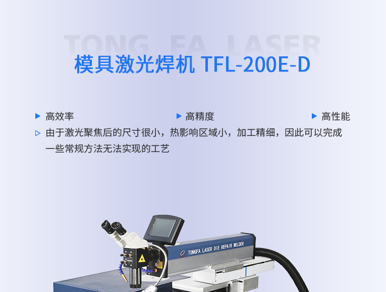 出口型模具激光焊機(jī)是通發(fā)激光公司專門為出口國外客戶使用而設(shè)計的系列機(jī)型TFL-200E-D,配置激光頭電動升降,同時配置操縱桿無極調(diào)速控制XY橫向和縱向電動移動。適用于各類精密注塑模具、壓鑄模具等模具激光修補焊接;同時也適合鑄件沙孔激光修補、模具崩缺激光修復(fù)、過切加工等的激光修補;各類金屬結(jié)構(gòu)件、金銀首飾的激光焊接加工。