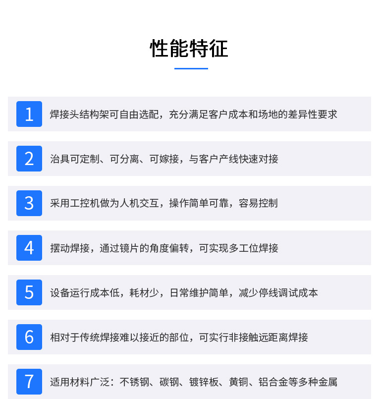 2、強(qiáng)大的PC控制,易于編程、調(diào)試和維護(hù)??赏瓿勺詣?dòng)或半自動(dòng)的點(diǎn)焊、對(duì)接焊、疊焊、密封焊,針對(duì)復(fù)雜的平面直線、圓弧及任意軌跡的焊接。
